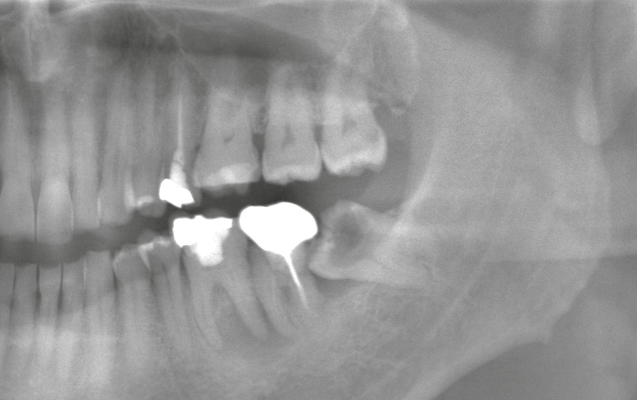 左下の親知らずは深い虫歯が神経にまで達しており、感染が深部に及んでいました。