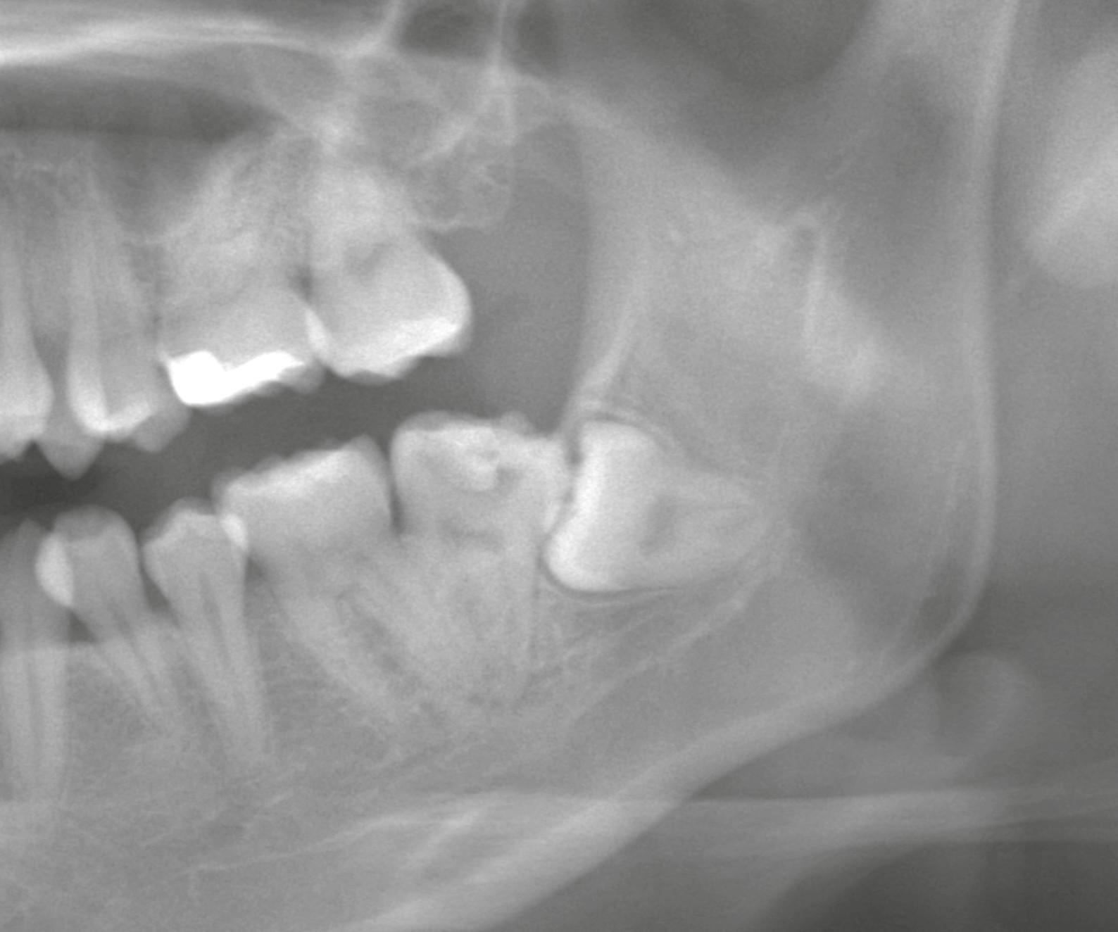 * 歯冠の約2/3が骨の中に埋まった埋伏状態