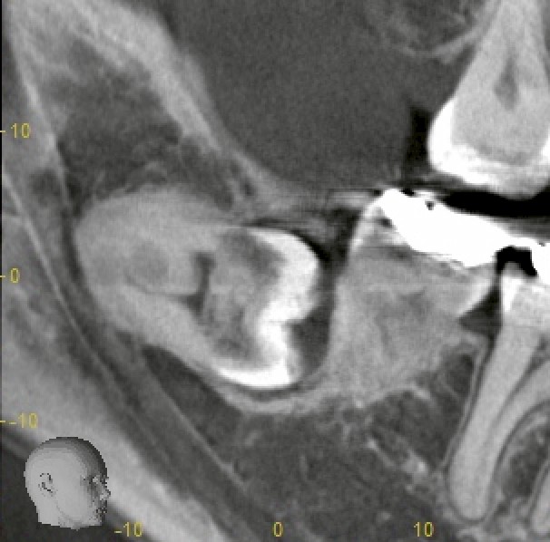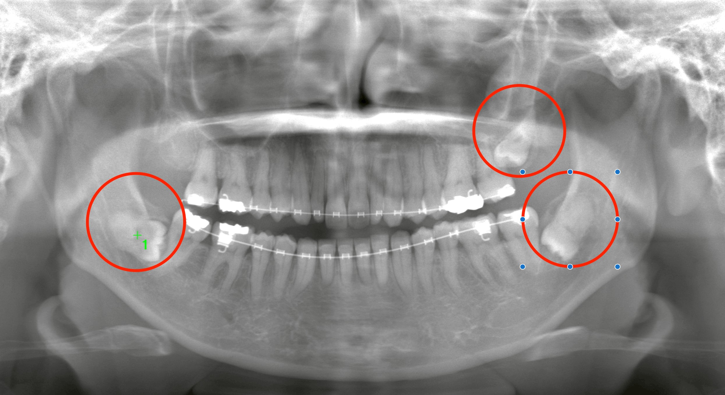 本日は、矯正治療中のアンギュレーション(歯軸改善)を妨げていた右下の埋伏親知らずの抜歯を行いました。