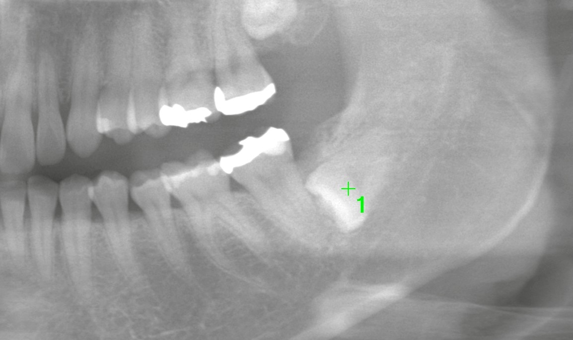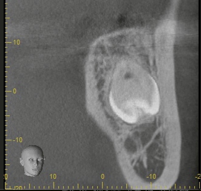 左下の親知らずは完全に骨の中に埋まっている状態(完全埋伏歯)でした。