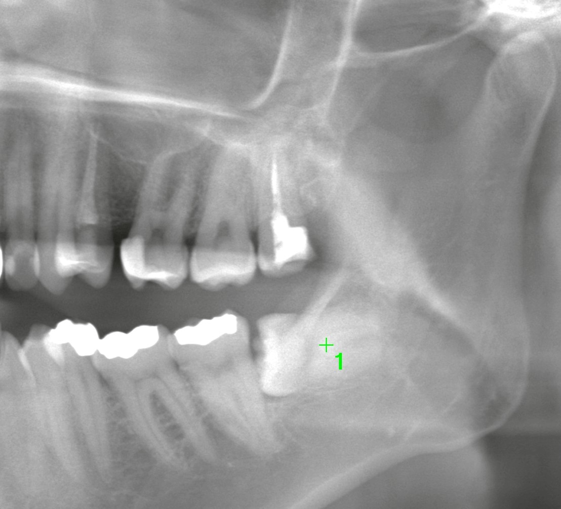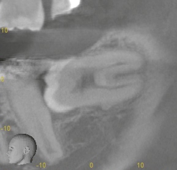 レントゲンで確認すると、下顎の親知らずは水平半埋伏。